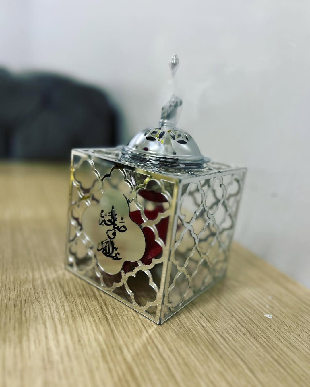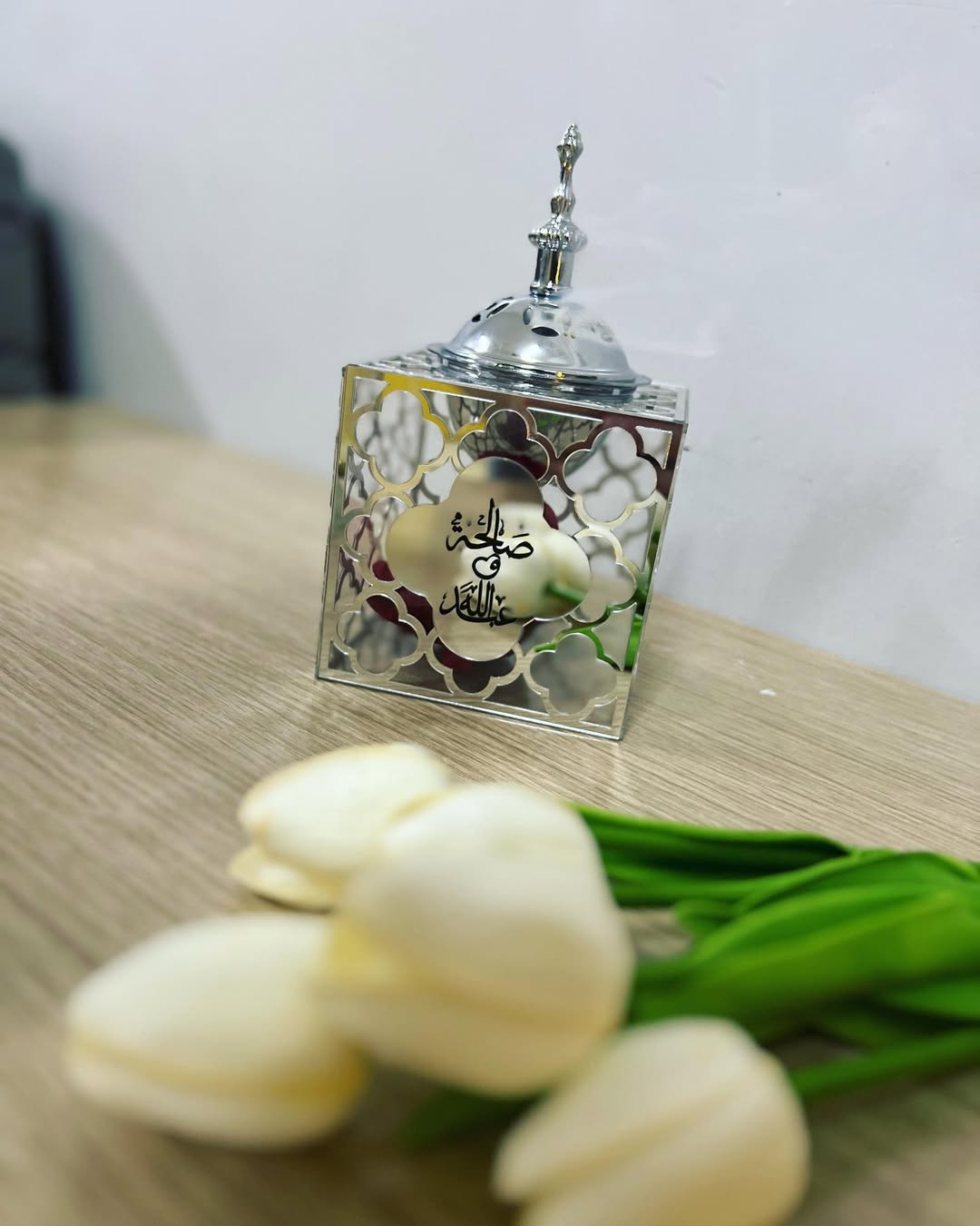 مزينة بعبارة "صلاة الله عليه وسلم" محفورة بدقة، وتمنحك تجربة تبخير أصيلة بروح شرقية معاصرة.